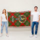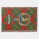 Clan Gregor or MacGregor crest badge surrounded by a strap and buckle over tartan background. Custom text.