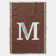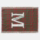 La manta de yacimiento de yegua de color rojo y verde que recubre el estampado de yeso tartán de MacGregor. Un gran monograma blanco de una letra está listo para personalizar junto con el texto verde que recorre la letra grande. Excelente incorporación a cualquier habitación y hace una buena idea de regalo.