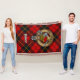 Emblema de la cresta del Clan Wallace rodeado por una correa y hebilla sobre fondo de tartán. Texto personalizado.