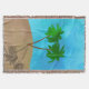 Arena y cielo de una escena de palmeras tropicales en la playa, hecha de un collage digital de acuarelas e imágenes con motivos