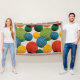 This striking pattern features brightly colored golf balls scattered across a warm, neutral background. Each ball is rendered with realistic dimpled texture, creating a tactile, playful surface rich in depth and detail. The bold palette of blues, greens, yellows, and reds gives the design a modern, energetic feel, making it perfect for sports-themed decor, contemporary interiors, wrapping paper, or creative surface design projects.