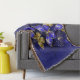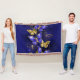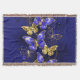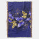 Composición de lujosas mariposas de zafiro y joyas de oro sobre fondo de textura azul.