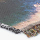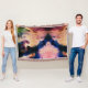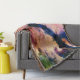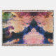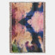 Arte de acuarela azul, violeta y blanca sobre una manta de tiro.