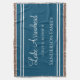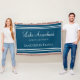 Tira la Moda azul y blanca con el nombre de tu lago, el nombre de tu familia y las coordenadas del mapa. Lakehouse moderno, guión de broche, coordenadas del mapa, longitud de la latitud,