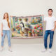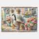 A tender cottagecore scene unfolds on a sunlit porch where graceful geese wander among blooming tulips, overflowing window boxes, and painted flowerpots. Soft pastels mingle with gentle greens and warm creams, creating a peaceful, storybook atmosphere rooted in folk charm and shabby chic warmth. The composition feels welcoming and nostalgic, blending whimsical countryside life with floral abundance and quiet spring joy. AI generated artwork.