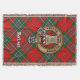 emblema de cresta de Clan MacLean rodeado por una correa y hebilla sobre fondo de tartán. Texto personalizado.
