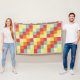 Un patrón compuesto por cuadrados de cinco colores diferentes, dispuestos en baldosas 4x4. Sin embargo, las baldosas 4x4 de la derecha se invierten y crean un diseño general más interesante. Este diseño se crea a partir de un gráfico vectorial de tamaño completo específicamente para este tipo de manta. Por lo tanto, los cuadrados de color de los bordes se extienden completamente al área de sangrado, asegurando que no haya bordes de patrón no deseados en el producto final.