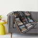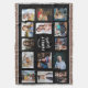 Custom photo collage Black Wall Throw Blanket featuring 14 photos of family, pets, memories, events, your photography, etc. and text in decorative yet simple white typography. The photo frame layout. colors of the background and text can be changed by editing in the design tool.