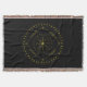 Cycles polyester throw blanket. Cycles is a Germanic design created by Anna M. Asbury and consists of a black background with an Aegishjalmr in the center and enclosed by Elder Futhark Runes. The design is enclosed in a diamond with the Ingwaz Runes, flanked on all four sides with a bind rune, and encircled by the Jera and Ingwaz Runes.