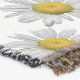 Esta artística y decorativa manta de tiro presenta margaritas salvajes con alegres centros amarillos y pétalos blancos. Alguien podría deambular y recoger cada pétalo de margarita mientras dice "él me ama, él no me ama".
