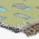 Manta de lanzamiento de estilo moderno y trendy con patrón botánico sin fisuras. Diferentes cactus y suculentas en macetas azules ilustrados a mano sobre fondo verde.