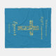 Una manta moderna de lana azul para la comunión con una cruz dorada y escritura con letras a mano. Personaliza con texto, nombre y fecha. Hace un regalo para la comunión.