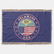 Insignia de Delaware con bandera de Delaware y bandera de los colores de Estados Unidos, forma redondeada. Emblema de Delaware. Sello de Delaware. Colección de Estados Unidos.