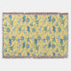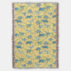 Montones de dinosaurios azules, Tyrannosaurus rex, Spinosaurus, Stegosaurus, Diplodocuments y Triceratops sobre un fondo amarillo.