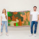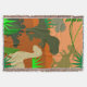 Esta manta de tiro tiene un diseño de novedad de dinosaurios en un ambiente de plantas y viñas.
