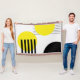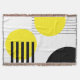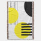Ilustracion de diseño abstracto con formas geométricas (círculos y rayas) en tonos amarillos y negros sobre fondo blanco.