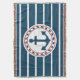 Diseño náutico con decoración de ancla en forma redonda sobre fondo rayado azul y blanco