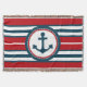 Diseño náutico con decoración de ancla en forma redonda sobre fondo rayado rojo, azul y blanco