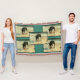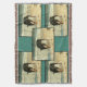 Pintura digital de un bello Doberman Pinscher frotándose en la playa mientras las olas del océano se lavan en la orilla y dejan huellas de pata en la arena.