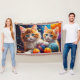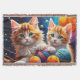 Gatitos esponjosos adorables jugando con bolas de hilados coloridos y planetas en el espacio AI ART por minx267
