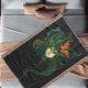 Una hembra seca con hermosas hojas verdes en un fondo negro con una gran mariposa naranja