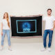 Un diseño elegante con una brillante lectura de texto en hebreo azul y blanco, "Shalom" (ש ל ם - paz), superpuesto a una imagen fractal azul y con aspecto grabado de una estrella de David.