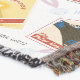 Patrón de pegatinas de inspiración retro para el Polar Express, árbol de Navidad y chocolate caliente caliente caliente caliente.