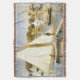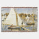 Pierre-Auguste Renoir. El Sena en Argenteuil. Bonito paisaje de colores cálidos. Hay un yate con una vela blanca a orillas del río. Los barcos navegan a lo largo del río. Cielo azul pálido con nubes. Reproducción de obras famosas de imágenes artísticas de dominio público.