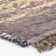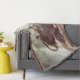Una manta tejida muestra a un niño asiático, tendido en la parte de atrás de un elefante grande y reclinado, leyendo un libro. El niño está sin camisa, usando pantalones cortos y zapatos marrones. El elefante es gris, con colmillos largos, y está tirado sobre un lecho de hojas. El fondo es una escena borrosa del bosque. La manta tiene un borde anejo. La imagen se toma con una luz suave y difusa, lo que le da un ambiente cálido y nostálgico.