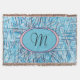 El elegante Monograma Throw Blanket color rosa azul tiene un diseño artístico moderno con líneas en varias direcciones y colores de rosa azul y blanco. Personaliza con tu persona inicial o para esa persona especial en tu vida.