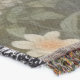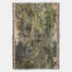 pintura vintage de una escena botánica de cisnes nadando en el agua en un jardín inglés con nenúfares, puentes y muchas flores exóticas