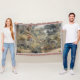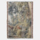 pintura vintage de una escena botánica con cebras en un oasis con palmeras y leones recorriendo el río