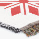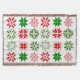 Esta manta de lanzamiento tiene un diseño Navidad de diferentes copos de nieve en rojo y verde en filas.