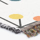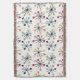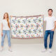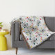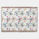 Esta manta de tiro tiene un diseño moderno de mediados de siglo de estallidos esparcidos por todas partes con círculos al final.