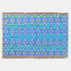 Estampado com imagem formatos retangulares nas cores verde claro, azul céu ou turquesa e azul real escuro... Sobre a imagem têm imagens・levemente amareladas nos lados e diminuindo se direciona ao, como o amarelo é centro e está sobre a cor azul, torna-se esverdeado.