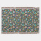 Características del este diseño del arte popular un estampado de flores del rosa, del naranja y del trullo en un fondo azul marino.