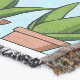 Arte de ai verde y azul que representa estantes o plantas de aloe vera.