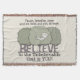 Little Boy es visto en una relajada pose en las copas de los árboles que ilustran la cita de arriba que nos recuerda que debemos hacer una pausa, respirar, rezar y dejar que la fe nos tranquilice. Las formas de los troncos de estos árboles deletrean la palabra, "CREYE" y la cita, "en el Increíble que es USTED!" debajo que completa el conocido dicho de David A. Carrizales. El dibujo es de Christie Black.