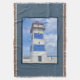 Diseño de temática náutica con decoración de faro acuático en un marco azul oscuro. Es posible cambiar el color de fondo y añadir uno diferente al diseño con su elección.