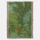 La obra de arte original de HomeWare en esta funda Throw usa una fotografía original para crear la ilusión de tejido retro o vintage. En la foto, hojas tropicales verdes profundas, con luz solar brillante y una sombra profunda, se abren paso a través de un fondo de cielo azul profundo. El diseño tiene un matiz verde antiguo y una textura que le da un aspecto de tela de seda antigua.