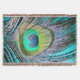 Una hermosa imagen de la pluma de pavo real sobre un impresionante fondo azul turquesa verde. El fondo turquesa seguramente saca a relucir el ojo azul de la pluma de pavo real. fotografía de Travis L. Lagasse en Flowstone Graphics.