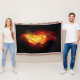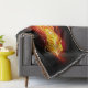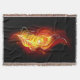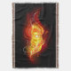 Una brillante pluma de pavo real hecha de fuego y llama sobre fondo negro.
