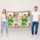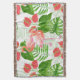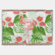 Diseño acuático con flores y pájaros flamencos, monstera y hojas de palma.