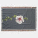 Manta Flor rosa Mallow hojas verdes sobre gris oscuro