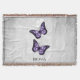 Añade un toque de color a tu habitación o habitación con una manta floral de mariposa morada personalizada. El diseño de la manta presenta un par de mariposas vibrantes que descansan sobre una vina floral blanca sobre un fondo gris claro. Artículos de regalo adicionales disponibles con este diseño así como una variedad de colores.