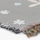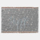 Texto caprichoso de "Hygge" en azul pálido con un patrón de pequeños copos de nieve blancos, flores azules y rosa pálido sobre fondo gris.