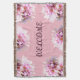 Empujar la manta con una foto de flores rosadas, nombre personalizado y color de fondo.