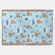 Charming red foxes in scarves wander a snowy blue forest of evergreens and mountains. Whimsical and wintery, perfect for cozy style.