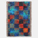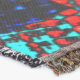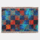 Cruce de color azul oscuro, con rayas azul claro y naranja, con tonos moteados rojizos y bordes oscuros que pueden causar la percepción de sucio o moteado.
