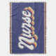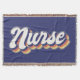 ENFERMERO RETRO AZUL LANZAR BLANKET Después de un día duro, a tu enfermera favorita le encantará meterse en esta manta groovy de enfermera. La palabra Enfermera aparece en negrita con escritura retro en tonos azules, naranjas, amarillos y blancos. De Llamado.